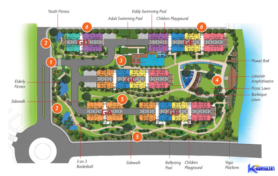 Lansekap yang menghadirkan sarana bagi warga untuk bersantai dan bersosialisasi sambil menikmati pemandangan danau dengan fasilitas Plaza with Amphitheatre, Children Playground, Flower Bed, Barbeque Area, Reflecting Pool yang bisa dinikmati.